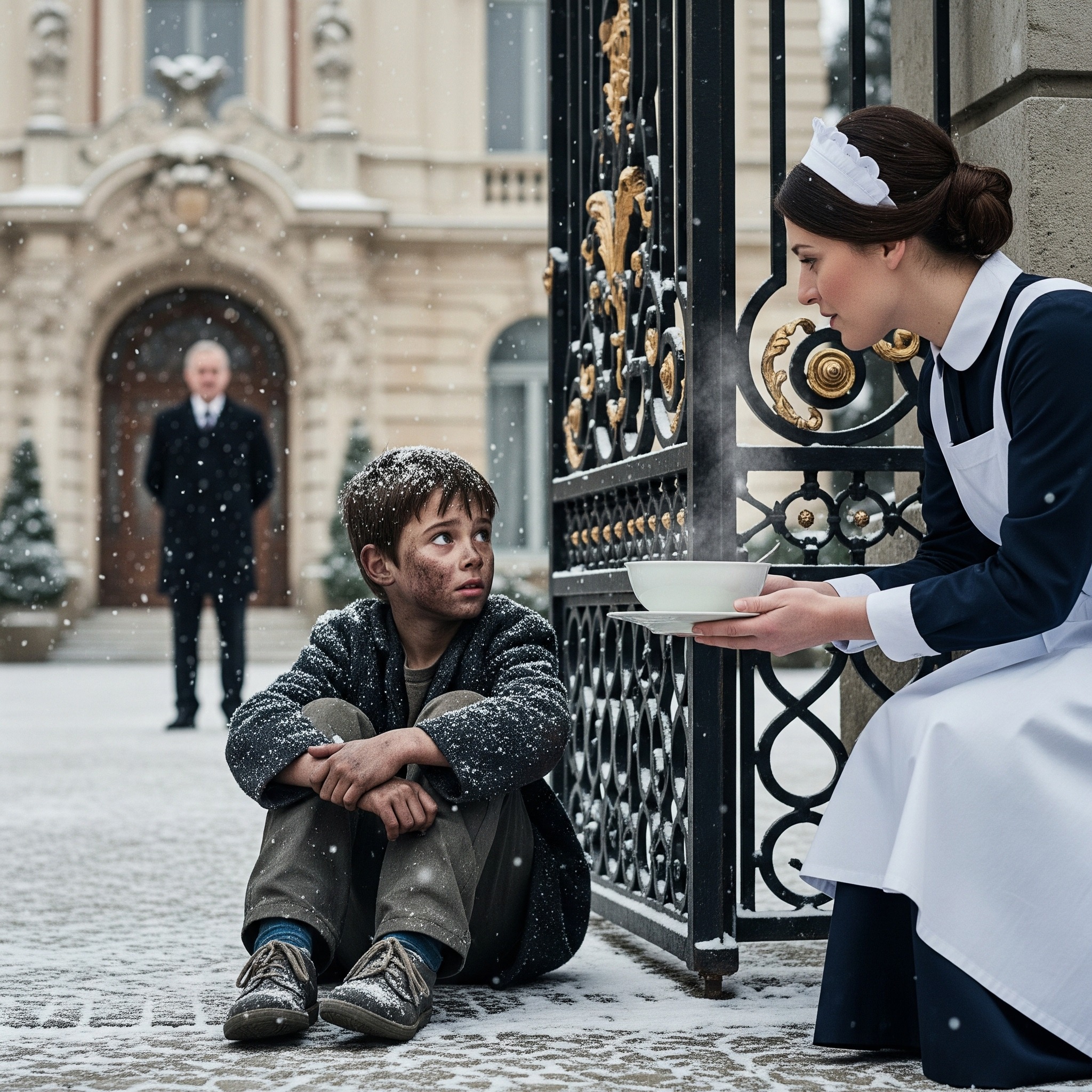 A boy. Barefoot, his face smudged with dirt, his arms wrapped tightly around his bony chest as he trembled from the autumn chill. His hollow eyes were fixed on the grand front door as if it might open to salvation.