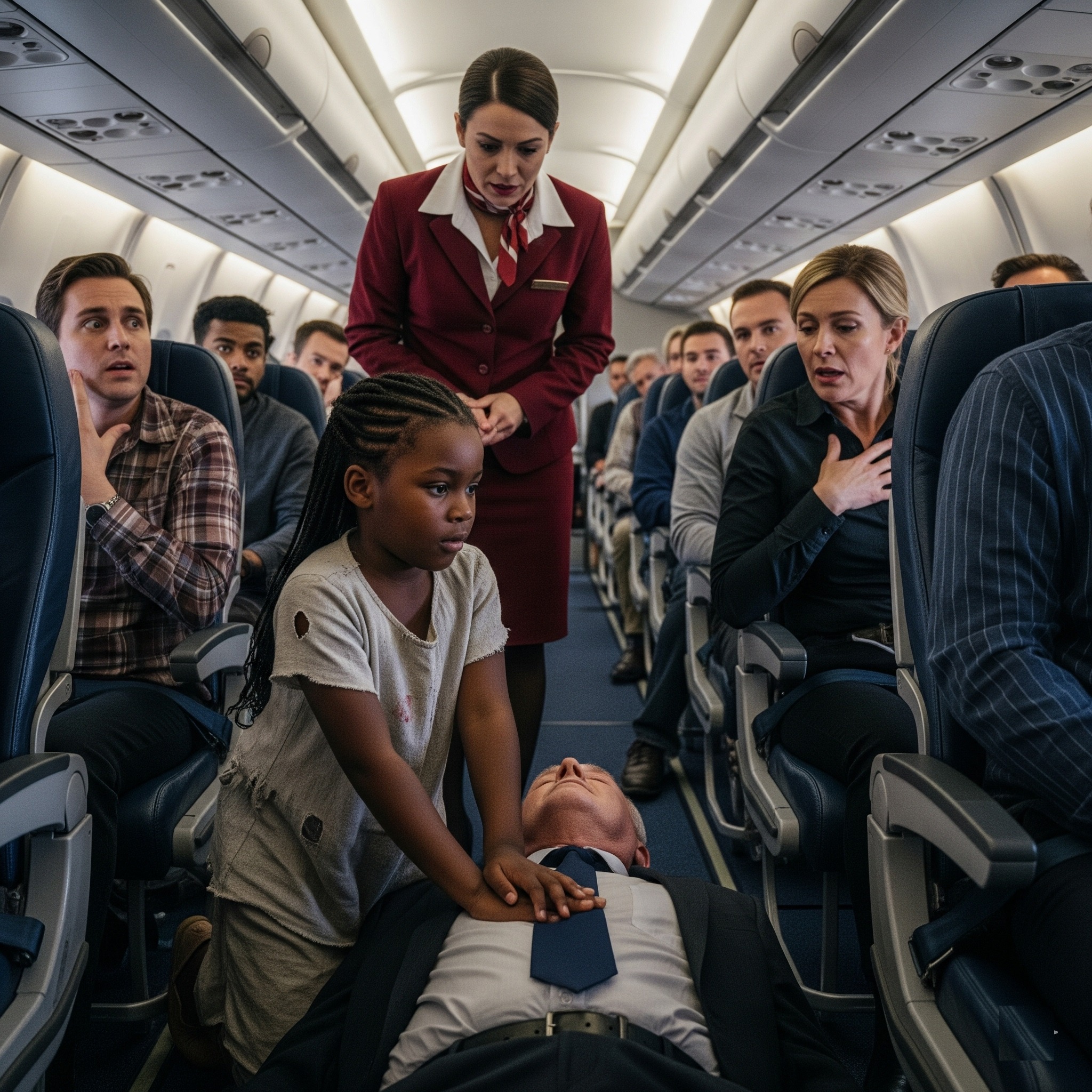 Minutes stretched like hours until finally, Richard gasped, his chest rising. Color slowly returned to his face. The plane erupted in applause. Amara fell back into her seat, shaking, while whispers spread across the cabin: A poor little girl just saved a millionaire’s life.