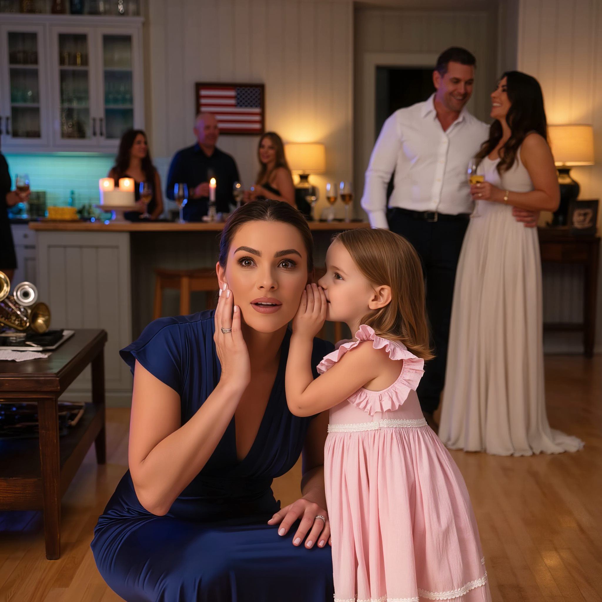 Olivia blinked, confused. She followed her daughter’s finger to a tall brunette in a navy dress, laughing beside Michael near the kitchen island.