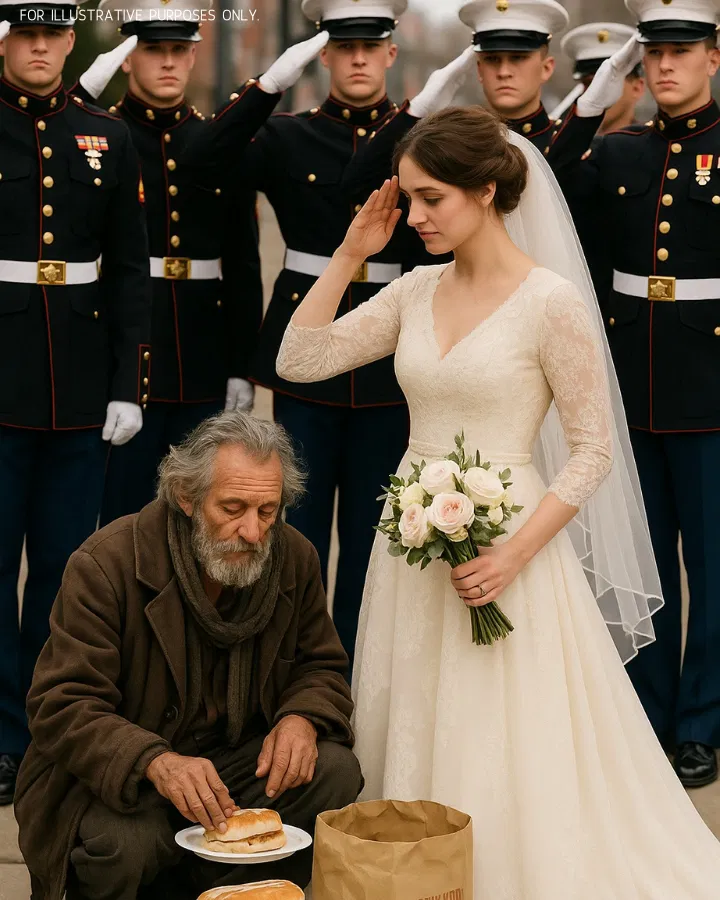 For 6 years, a young baker left warm food for a quiet homeless man—never asking his name! On her wedding day, 12 Marines arrived in full uniform… and something unexpected happened