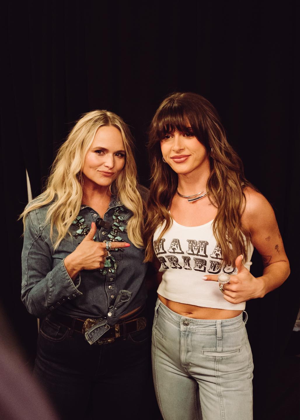 Earrings clasped from both sides, boots pulled on mid-step, lipstick swiped between breaths—everything moved in a blur. The mirror barely had time to reflect her before she was already turning toward the stage. And just beyond the chaos stood Miranda Lambert—calm, grounded, like she’d lived this moment a hundred times before.