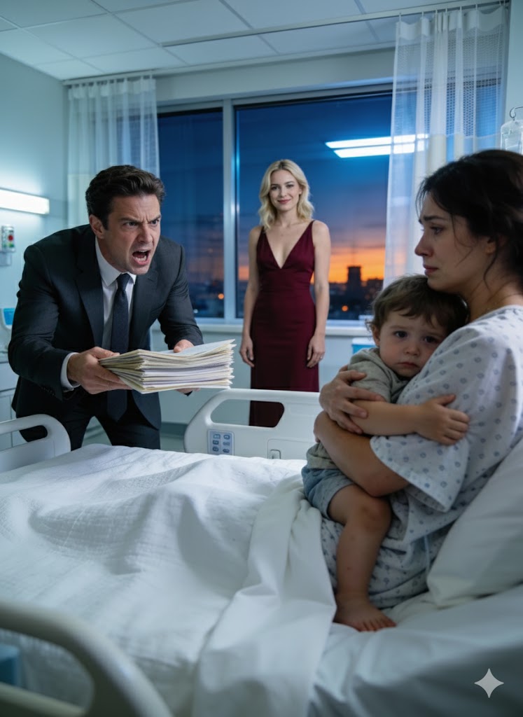 She stood barefoot in the kitchen, holding eight-year-old Mia’s hospital bills in one hand… and the divorce papers Ryan had left on the counter in the other.