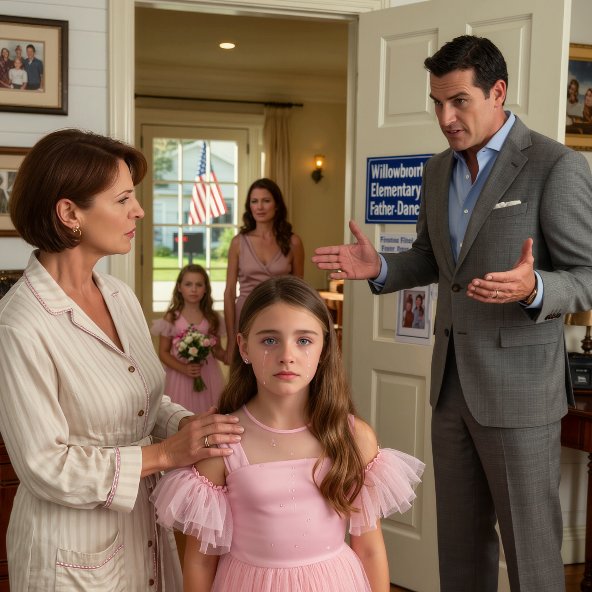 The father-daughter dance had been circled on the Willowbrook Elementary calendar in glitter pen for weeks. Every February the PTA transforms the gym into a paper garden—streamers, twinkle lights, a balloon arch at the double doors, a rented photo booth with props. The DJ always plays three songs that span the decades so even the reluctant dads can sway to something they recognize. It’s a small American ritual that lives in a thousand towns: corsages from the florist on Main, dads pretending not to be nervous, daughters practicing spins in socks on hardwood floors.
