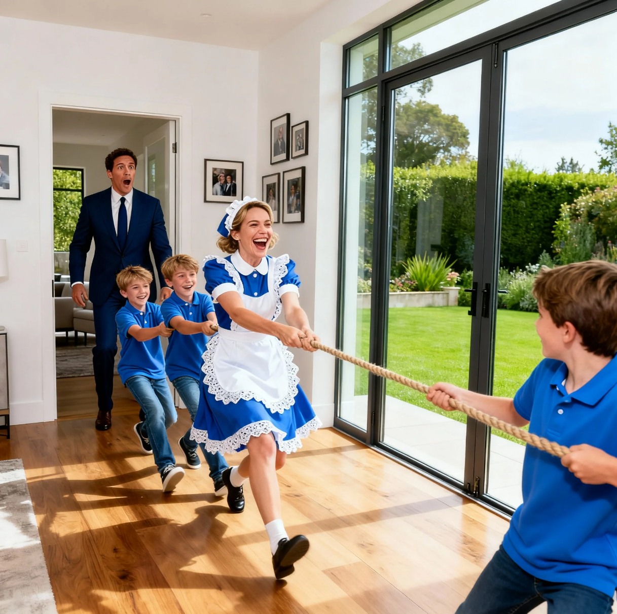 He stepped into the grand foyer. He loosened his tie, preparing for the usual routine: the boys sitting silently in front of the TV, the housekeeper nodding politely, the heavy, oppressive quiet.