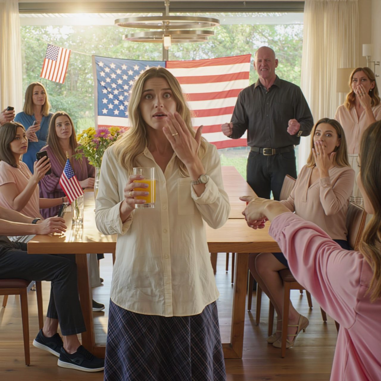 The sound of forks pausing midair. The ring light’s faint buzz. My mother’s sharp inhale cutting through the air like broken glass. And in the middle of it all, I froze — glass pitcher in hand, juice trembling inside.