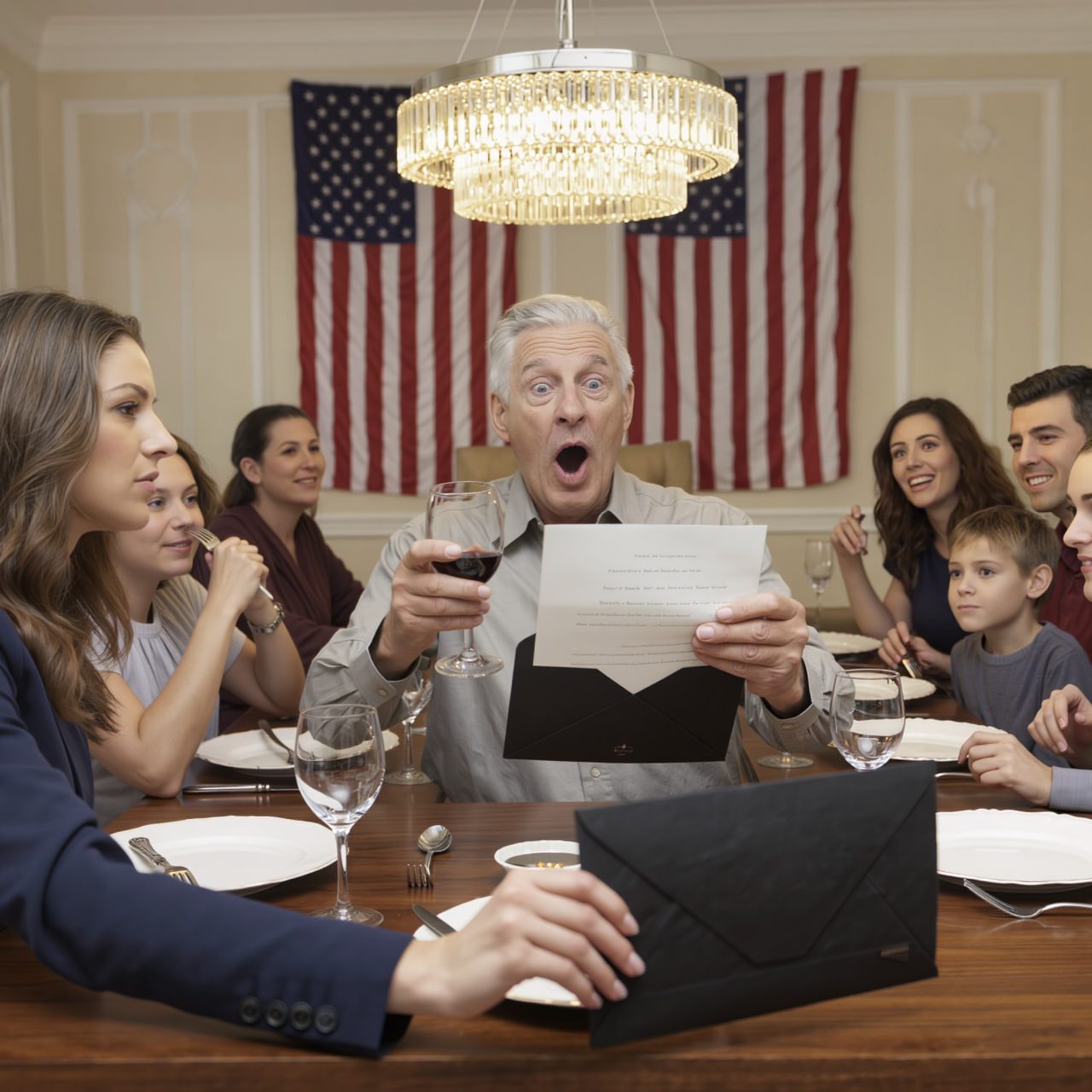 The laughter that had followed his cruel toast had already dissolved. The table was tense now, eyes flicking between my father’s furrowed brow and the envelope resting against his plate.