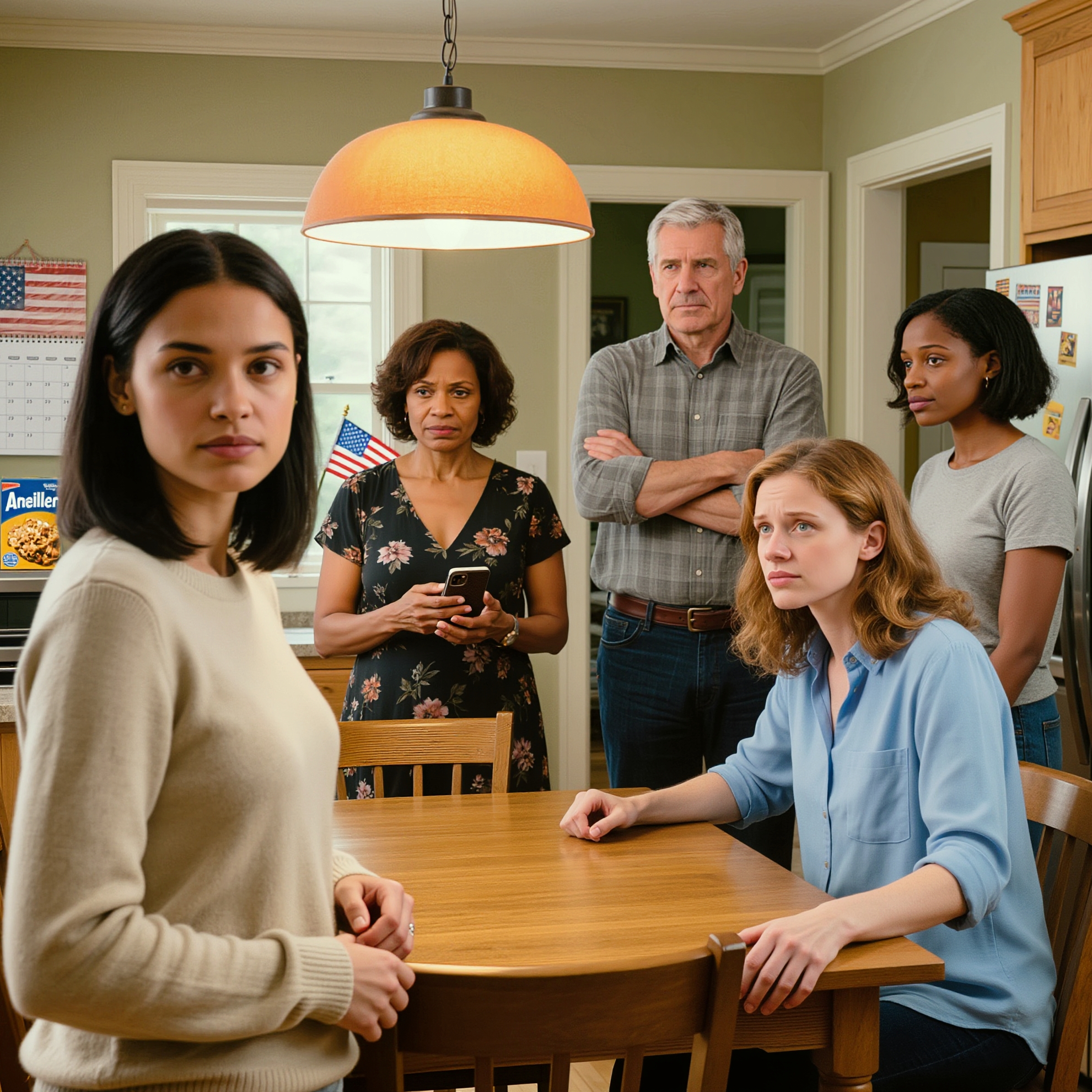 I heard it before I felt it—a dull table edge against my side and a breath that wouldn’t land—and then everything in the kitchen went thin and echoing, like sound in a gym after the buzzer. Emily was still talking about a shirt, about how I “always take things,” voice high and sure the way it gets when she’s already decided where the truth lives. I put a hand to my ribs and tried to stand without groaning. Mom came in fast, eyes scanning for windows and neighbors before she even looked at me. Dad filled the doorway like a closed door. I reached for my phone, and Mom’s fingers were quicker than pain, gentle in a way that wasn’t kind as she lifted it out of my hand. “It’s just a rib,” she said, the way people say it’s just a scratch. “Don’t ruin your sister’s future.” Dad’s mouth tightened. “Anna, stop being overdramatic.” Somewhere outside, a flagpole halyard clicked in the wind, a neat little metronome in our quiet Virginia cul-de-sac.