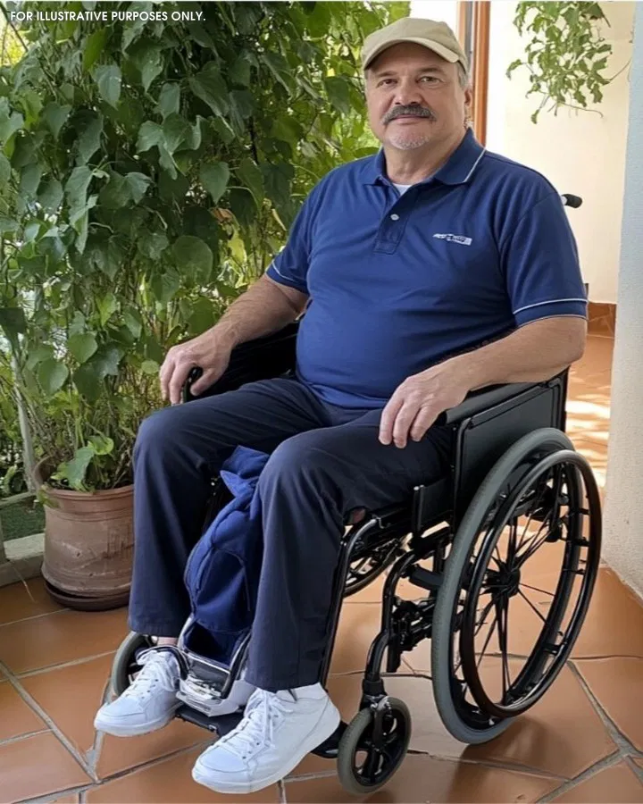A man in a wheelchair sat nearby, watching the passing cars with a sorrowful expression. He appeared unkempt, and the sadness in his eyes was unmistakable.